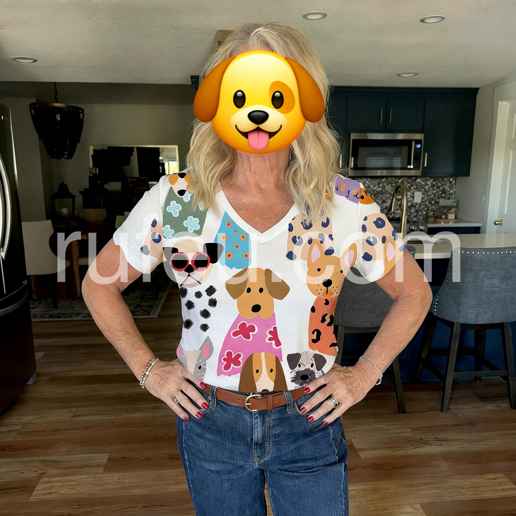 Style# 1544301Brighten your day with this Whimsical Dog Print Short Sleeve Top, a cheerful and eye-catching piece that turns heads with its playful, hand-drawn style canine illustrations. Featuring an adorable array of cartoon dogs in vibrant outfits—complete with sunglasses, floral dresses, and bold patterns—this top brings a joyful, artistic flair to any outfit. Crafted from lightweight, breathable fabric—likely cotton or linen blend—it’s perfect for warm weather and casual wear. The relaxed fit, short sleeves, and soft V-neckline offer ultimate comfort and effortless style, making it ideal for beach days, brunches, or weekend outings. Whether you're a dog lover or simply adore fun fashion, this top is a must-have statement piece that blends humor, creativity, and charm. Pair it with white jeans, denim shorts, or flowy pants for a look that's both flirty and full of personality. Inspired by the whimsical spirit of brands like Lulus, this top celebrates individuality and lighthearted fashion—perfect for those who love to express their fun side with every step.