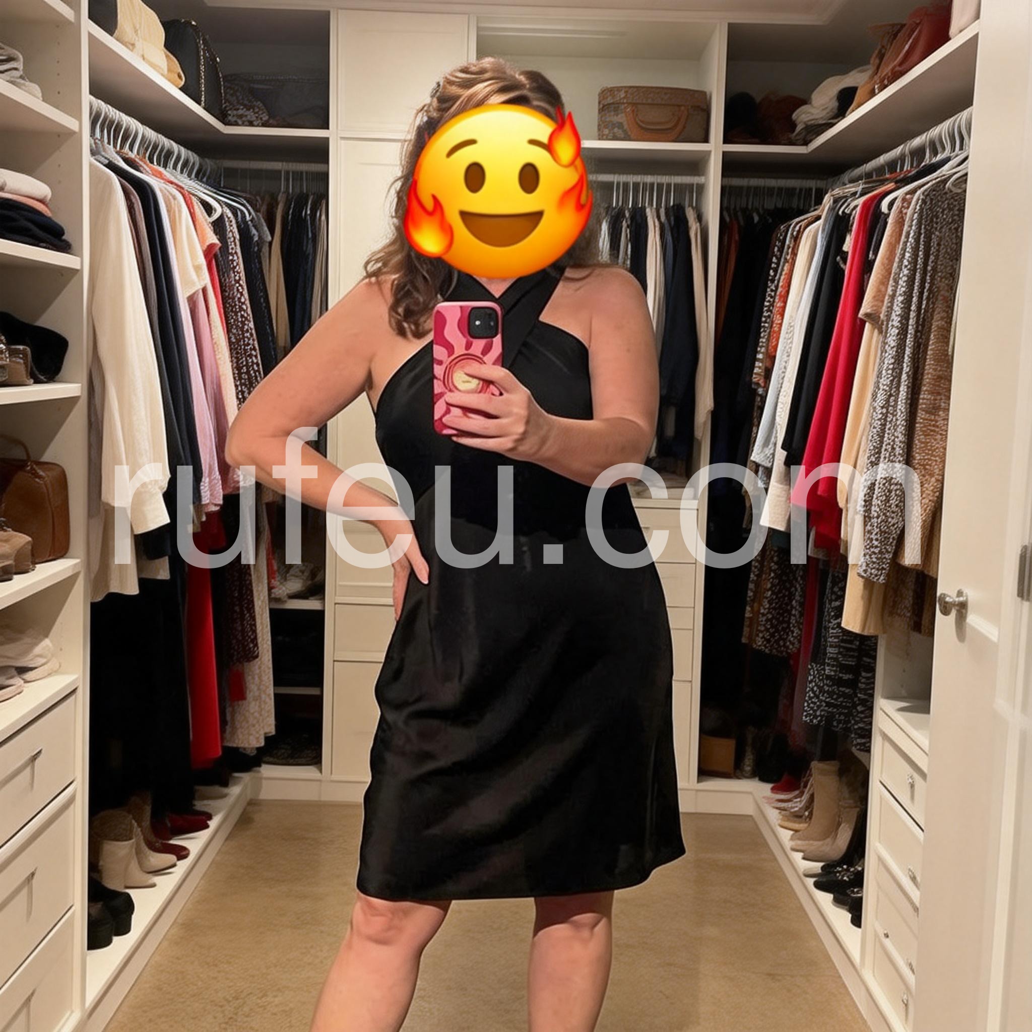 I absolutely love this little black dress! The criss-cross halter neckline is so elegant and unique. It fits perfectly and hides my tummy area beautifully. Great for date night!