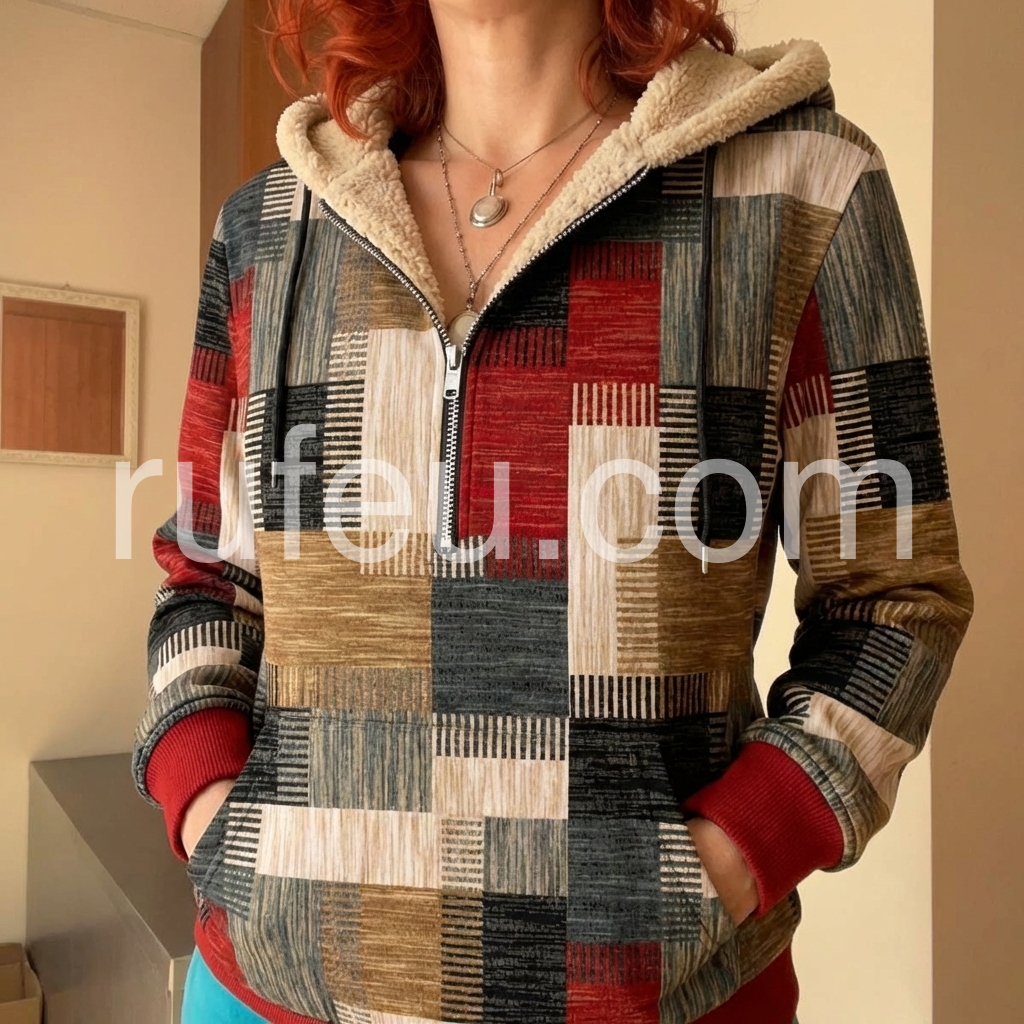 This versatile sweatshirt combines comfort with contemporary style through its distinctive patchwork design. The fleece lining provides warmth and softness against the skin, making it ideal for layering during cooler months. The zip-front closure allows for easy adjustment and ventilation, while the casual silhouette works seamlessly with jeans, joggers, or athleisure wear. Durable construction ensures lasting wear through frequent washing and everyday use. Perfect for weekend outings, casual work environments, or relaxed social gatherings.
