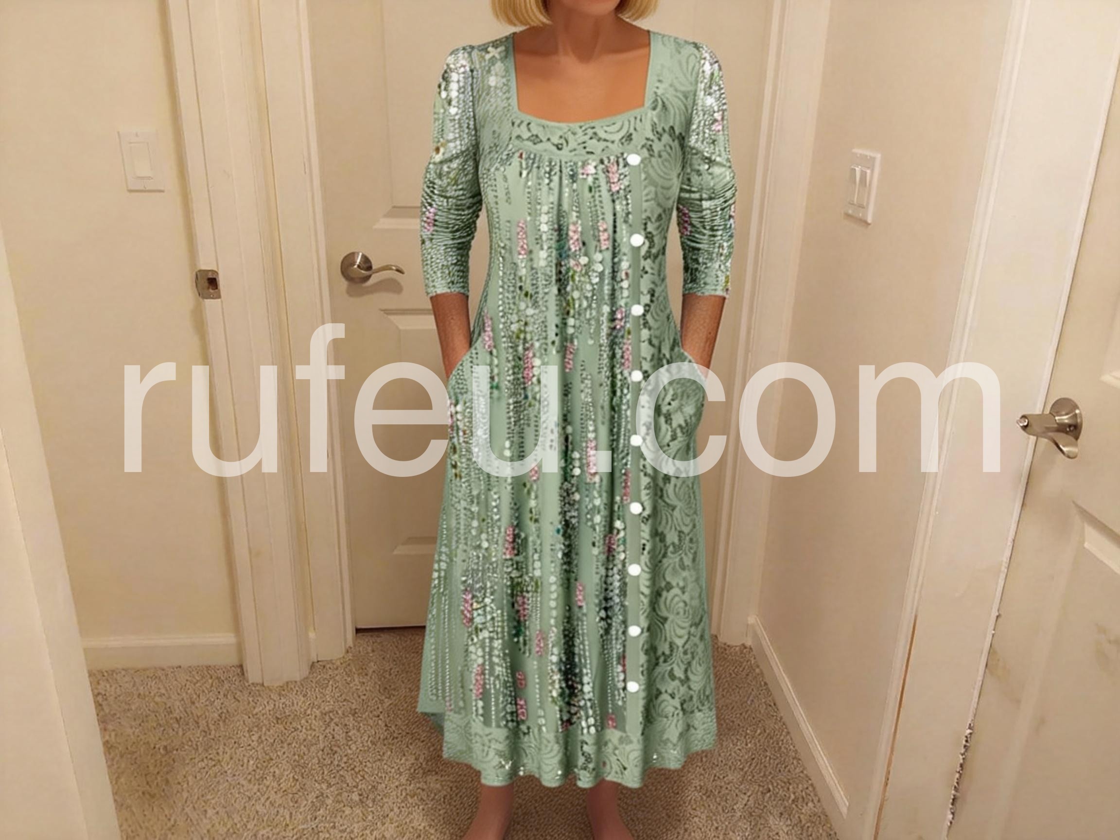 Style# 1372212Imagine effortless elegance that turns heads at every glance. This fresh green midi dress captures modern sophistication with its architectural square neckline that frames the collarbone beautifully, paired with graceful long sleeves for refined polish. The A-line silhouette flows with understated grace, while the luxurious rayon-elastane blend moves like silk against your skin—stretchy enough for all-day comfort, yet structured enough to maintain its impeccable shape. Practical side pockets add a touch of everyday luxury, while the midi length strikes the perfect balance between timeless and contemporary. Whether you're navigating the office, attending weekend brunches, or stepping into evening plans, this dress adapts seamlessly to your lifestyle. Machine washable for effortless care. Discover the dress that makes you feel as good as you look.