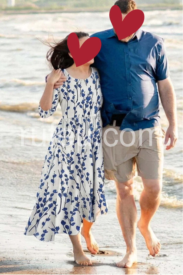Style# 1544426Embrace the serenity of seaside living in this Coastal Blue Botanical Print Midi Dress, a dreamy and elegant piece that captures the essence of Mediterranean charm. Crafted from lightweight, breathable fabric—likely cotton or linen blend—this midi dress features a crisp white base adorned with a delicate all-over print of navy blue leafy vines and botanical sprigs, evoking the beauty of coastal flora. The relaxed A-line silhouette flatters every figure, while the high waist and gentle gathering create a soft, flowing shape that moves gracefully with you. Short sleeves and a round neckline offer timeless comfort and ease, perfect for warm days by the sea. Designed with functional side pockets, it’s both stylish and practical—ideal for strolls through whitewashed villages, beachside brunches, or summer vacations.