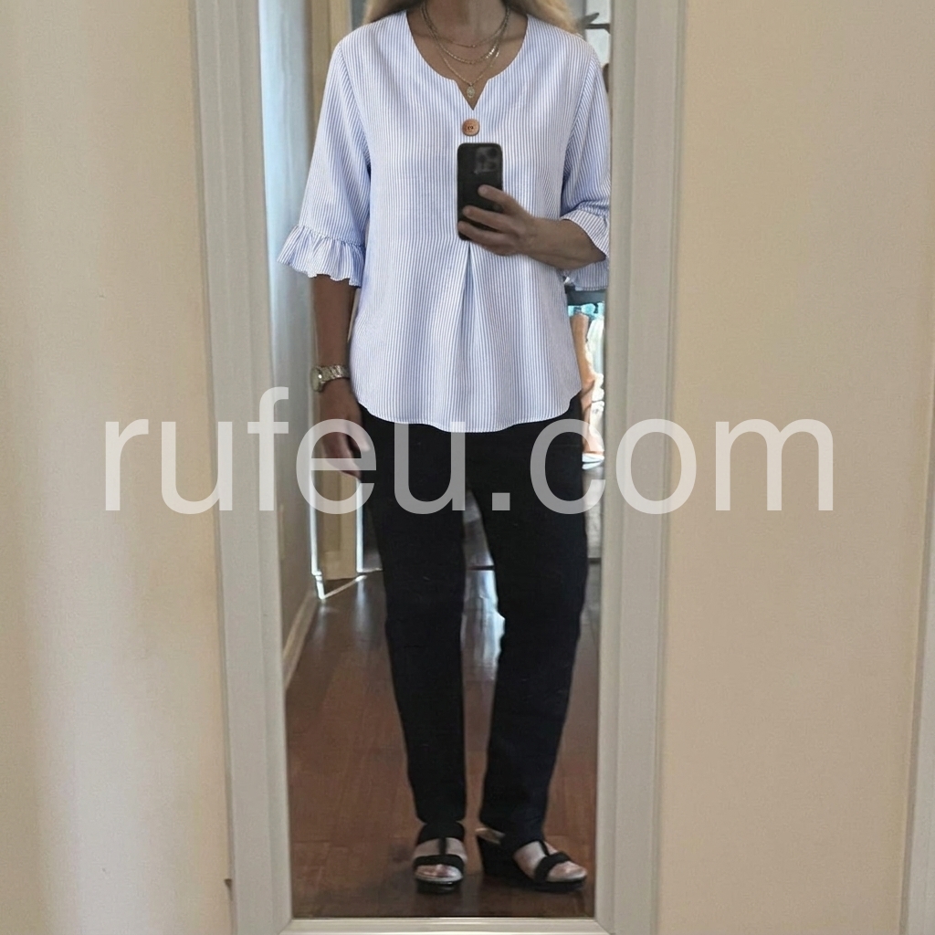 As a designer, I crafted this blouse to solve the common pain point of "too casual or too formal" daily tops. The notched V-neck flatters all necklines, while the ruffled cuffs add a feminine touch without being overly frilly.
