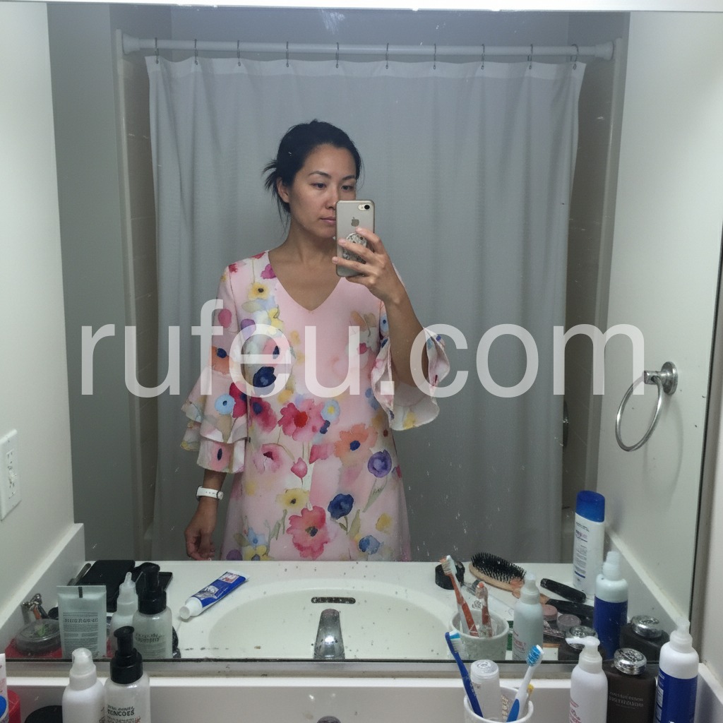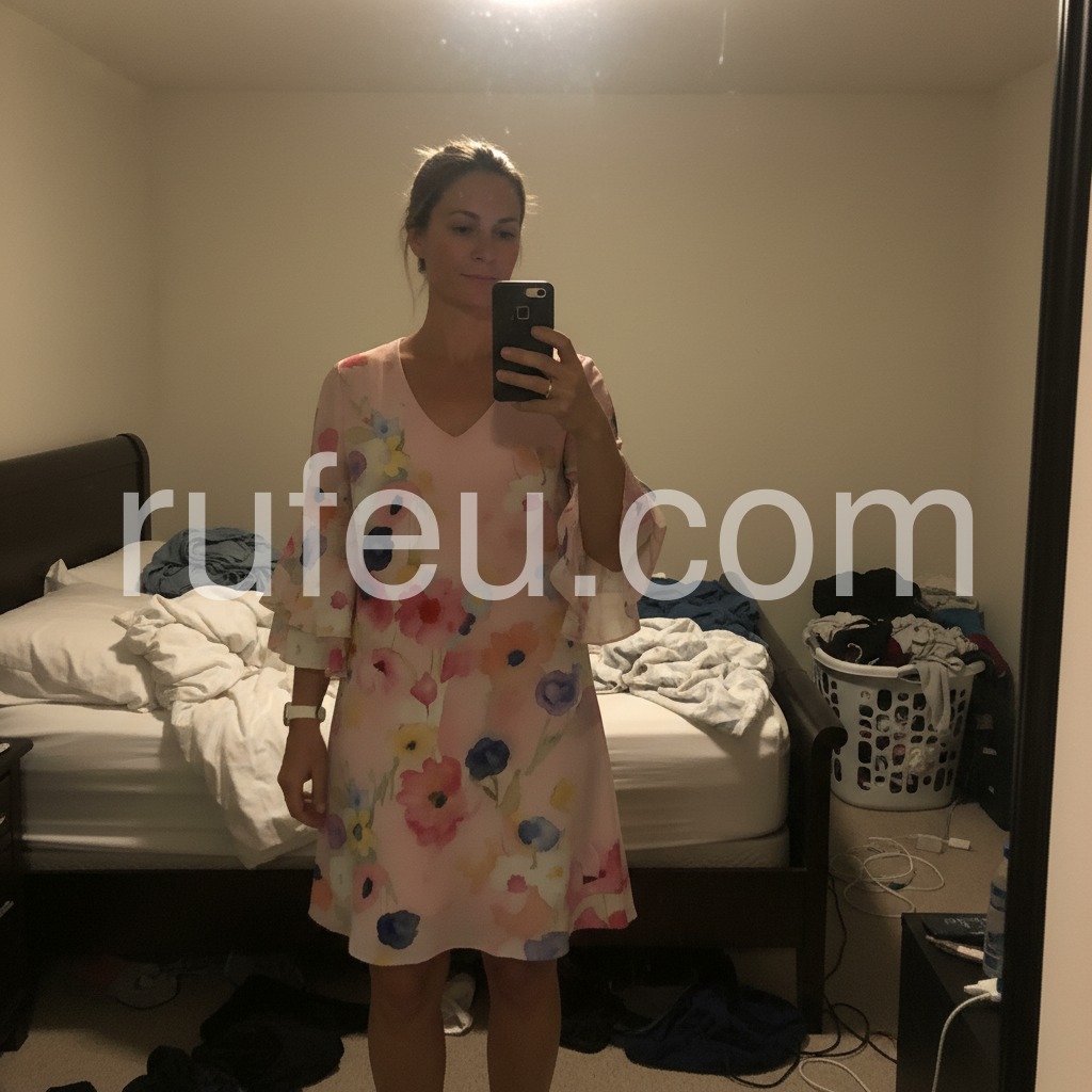 Absolutely love this dress! The watercolor floral pattern is so beautiful in person. The fit is incredibly flattering and forgiving without looking like a tent. Perfect for my upcoming spring vacation.