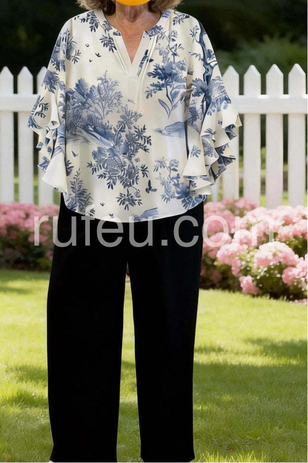 Charming Blue Toile Print Blouse