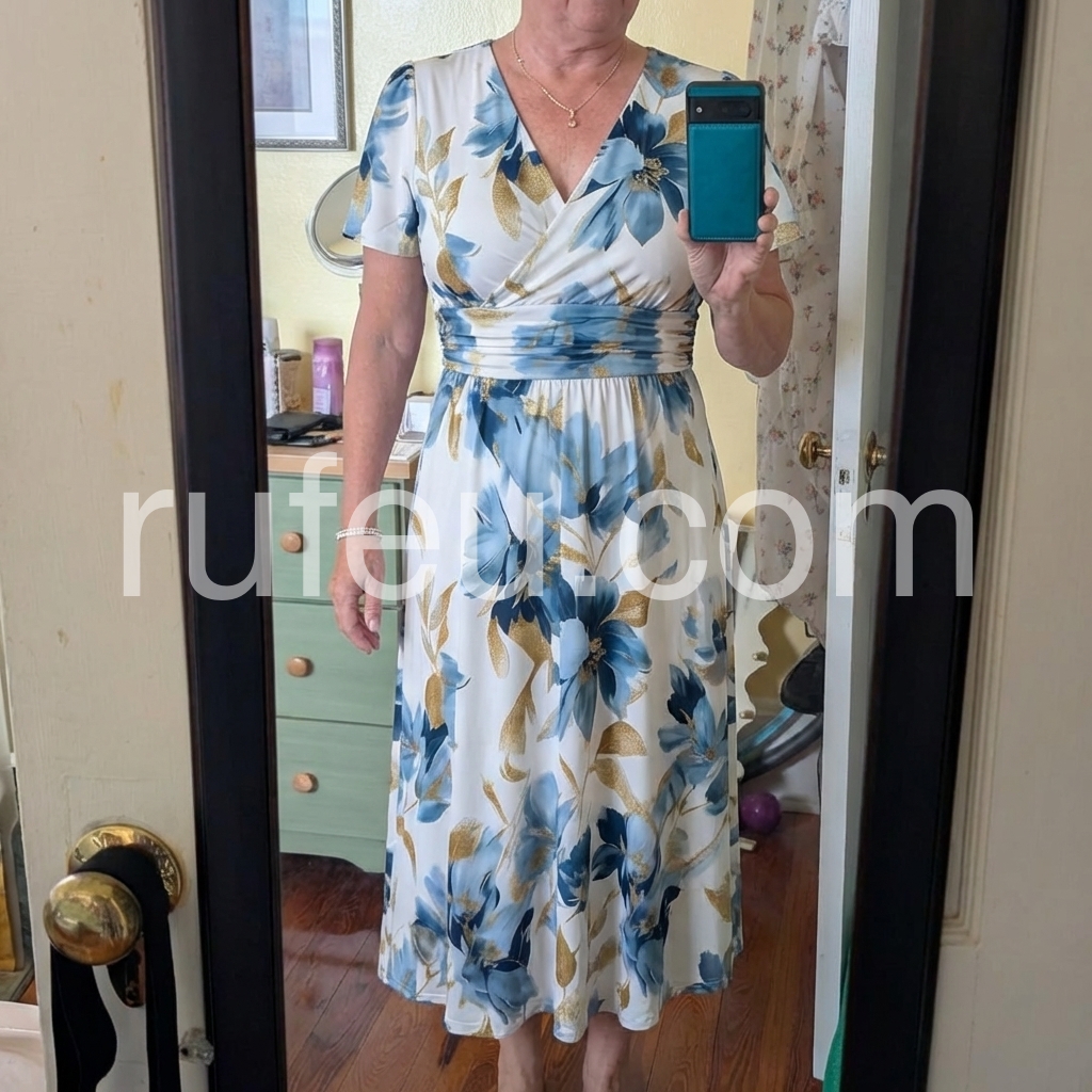Wore this on a cruise and it was exactly what I was looking for. Light, airy, and very comfortable for dinner. The blue flowers pop beautifully.