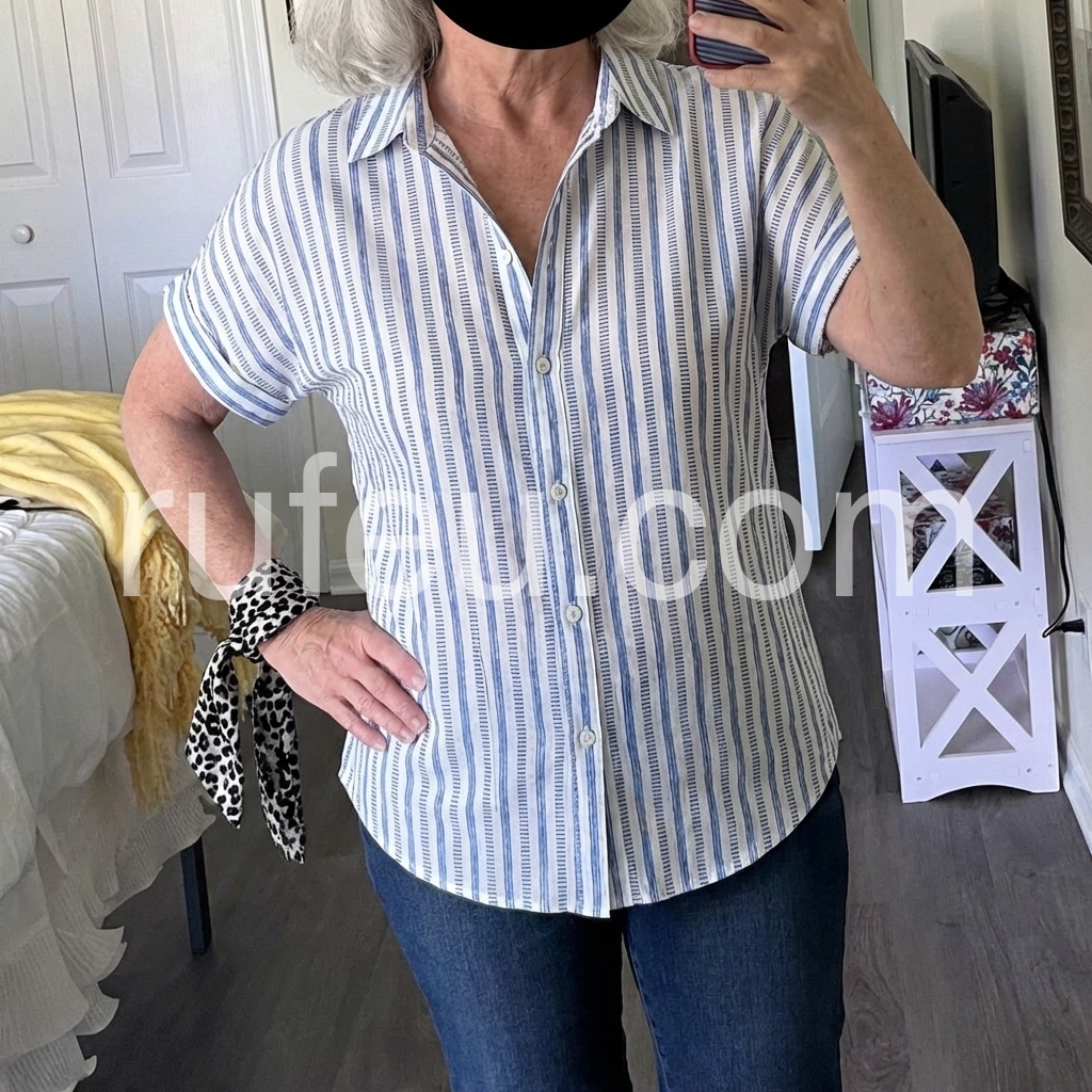 This blue and white striped shirt is a wardrobe staple! The classic print is timeless, and the oversized fit is so on-trend.