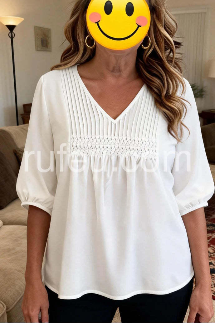Classic White Plain V-Neck Top