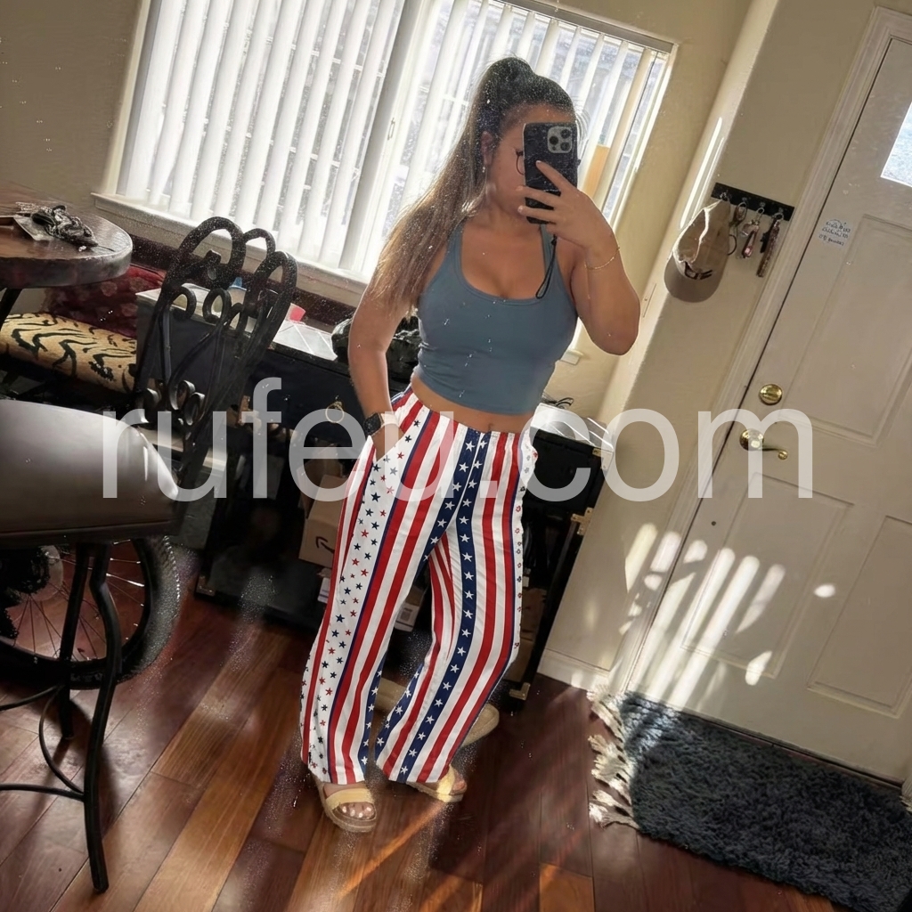 I am obsessed with these stars and stripes pants! They are incredibly eye catching and I received so many compliments at our Memorial Day party. They wash well too, no fading or shrinking so far.