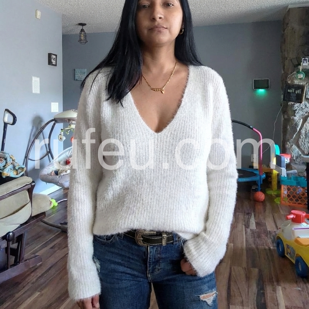 Back and Forth Deep V Neck White Sweater