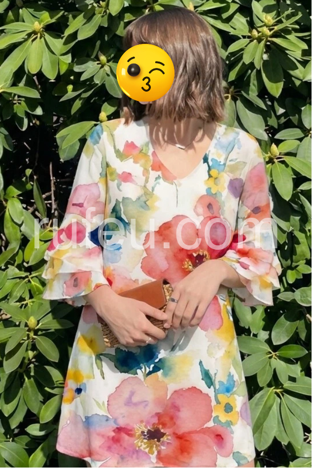 This floral dress features a soft watercolor print with vibrant pink, red, and blue blooms on a light background. The V-neckline and flared sleeves add a romantic touch. Loose, relaxed fit ensures comfort and ease. Perfect for spring outings, brunches, or beach days. Lightweight fabric flows beautifully for a breezy, effortless look.