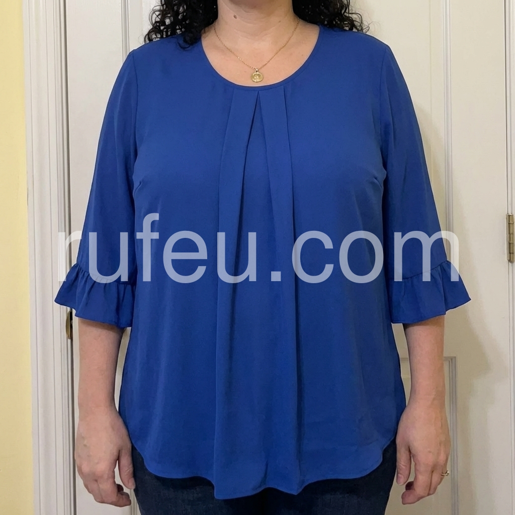 Elevate your everyday style with this gorgeous royal blue blouse. It features delicate front pleats and flirty ruffled cuffs, adding a touch of elegance to your look.