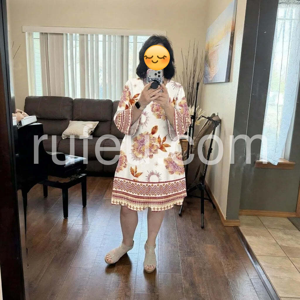 This long sleeve mini dress features a unique floral print, adding a touch of elegance to your wardrobe. With its comfortable and stylish design, this dress is perfect for any occasion. Made from high-quality materials, it offers both durability and style. Elevate your look with this one-of-a-kind dress.