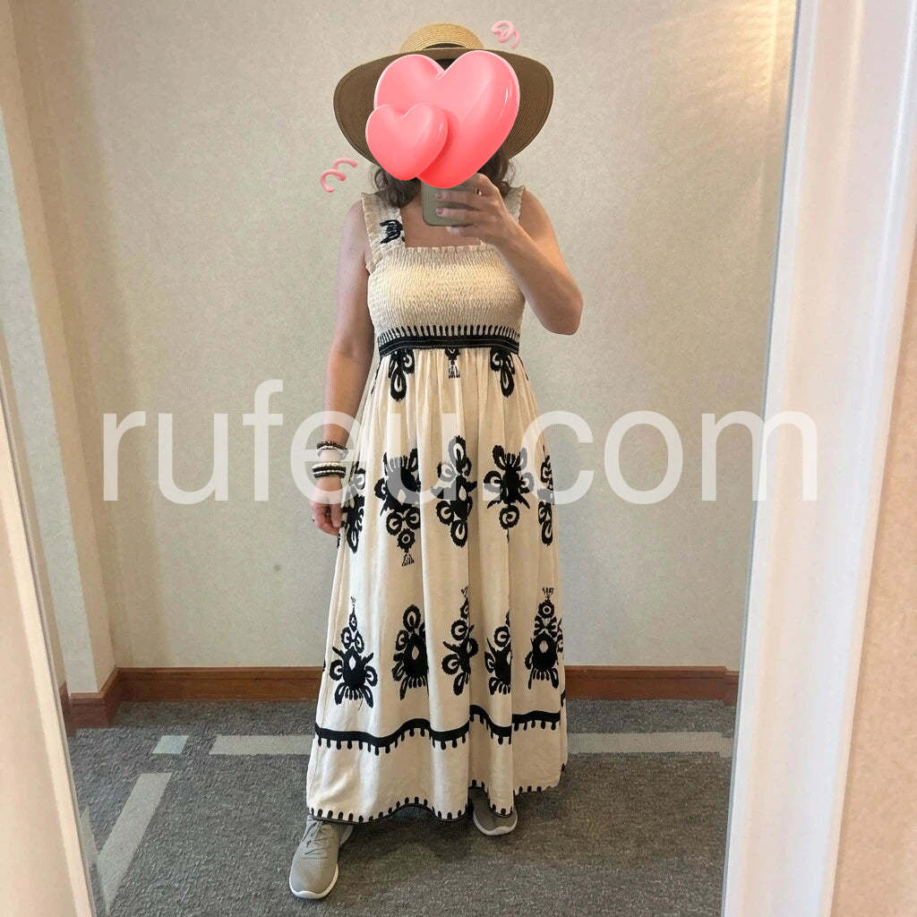 Gorgeous dress with beautiful detailing. The black embroidery stands out nicely against the cream background, and the smocked top provides a secure, comfortable fit. The length is perfect for both everyday wear and special occasions. Packaging was neat and delivery was quick.