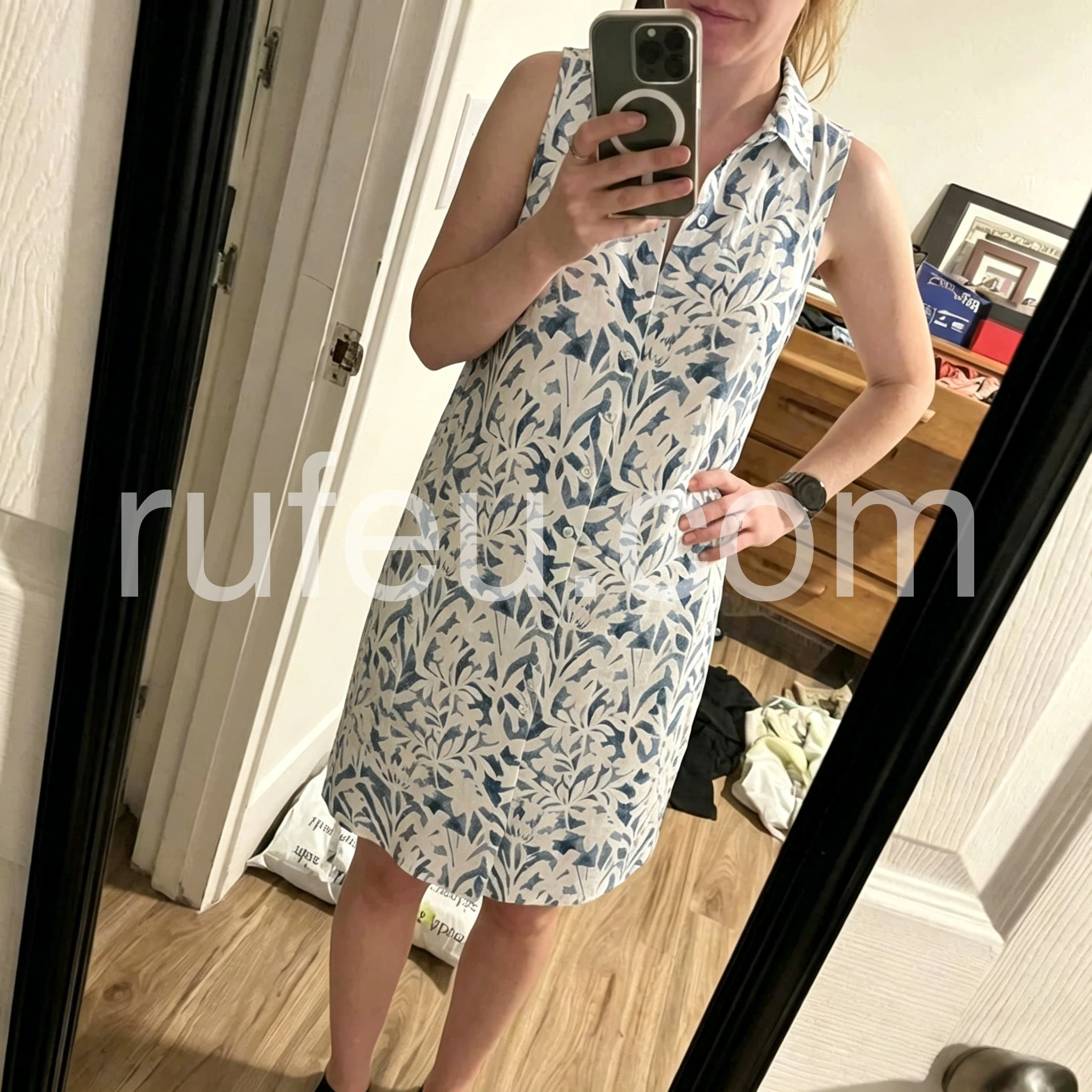 Crafted for women tired of stiff, unflattering shirt dresses, this style checks every box. The watercolor botanical print adds soft, feminine charm, while the sleeveless design keeps you cool in warm weather—no more sticky, overheated arms.