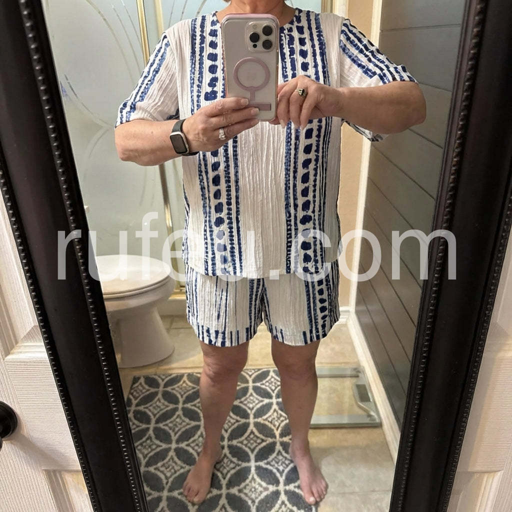 Elevate your loungewear collection with this meticulously designed Round Neck Short Sleeve Two Piece Set. Crafted for optimal comfort without sacrificing style, this versatile ensemble features a relaxed fit and premium fabric composition that maintains its shape throughout daily wear. The thoughtfully constructed round neckline and short sleeves offer unrestricted movement, making it ideal for both relaxation and casual outings. A sophisticated essential for the discerning customer seeking both functionality and refined aesthetics.