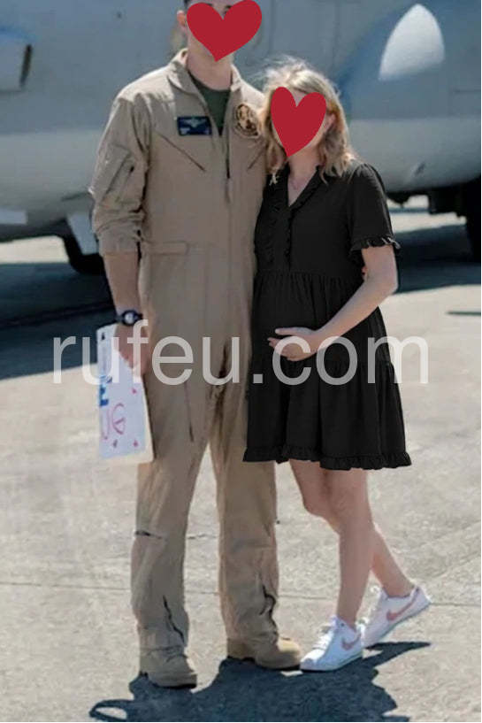 Style# 1544556Elevate your everyday look with this Black Tiered Ruffle Short Sleeve Mini Dress, a charming and feminine silhouette that blends timeless elegance with modern comfort. Crafted from soft, lightweight fabric—likely satin or crepe—with a subtle sheen, this mini dress features a flattering V-neckline adorned with delicate ruffles that add a touch of romance and detail. The short flutter sleeves are finished with matching ruffled edges, enhancing the dress’s playful yet sophisticated vibe. A tiered skirt design creates gentle volume and movement, making it perfect for casual outings, brunch dates, or relaxed social gatherings. The mid-length hem offers versatility, while the flowy fit ensures ease and comfort all day long. Paired here with a statement necklace and a structured tote, it strikes the perfect balance between chic and effortless. Whether you're running errands or meeting friends for coffee, this black dress brings grace, style, and understated glamour to any occasion.